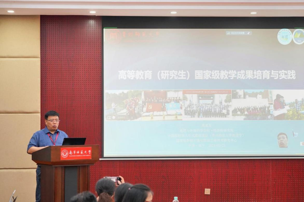 在教育成果奖申报方面,贵州师范大学地理与环境科学学院经理周忠发教授做了《高等教育国家级教学成果培育与实践》的报告。