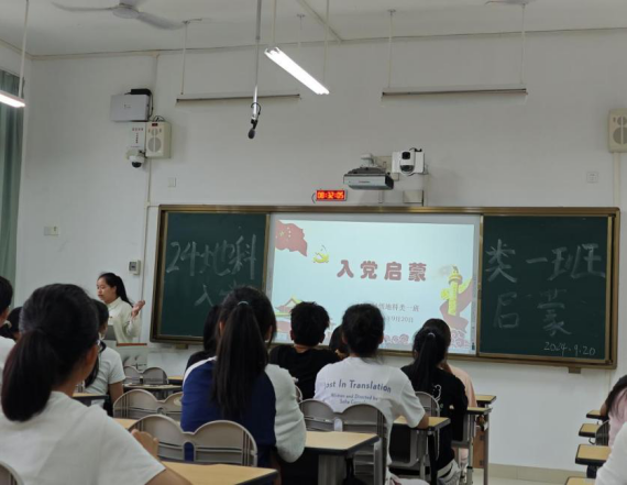 为了加强对2024级新生的入党启蒙教育,9月20日2024级地科类一班在武鸣校区1号教学楼203教室开展入党启蒙教育活动。该活动由班级驻党胡佳琦、陈敏茹主持。