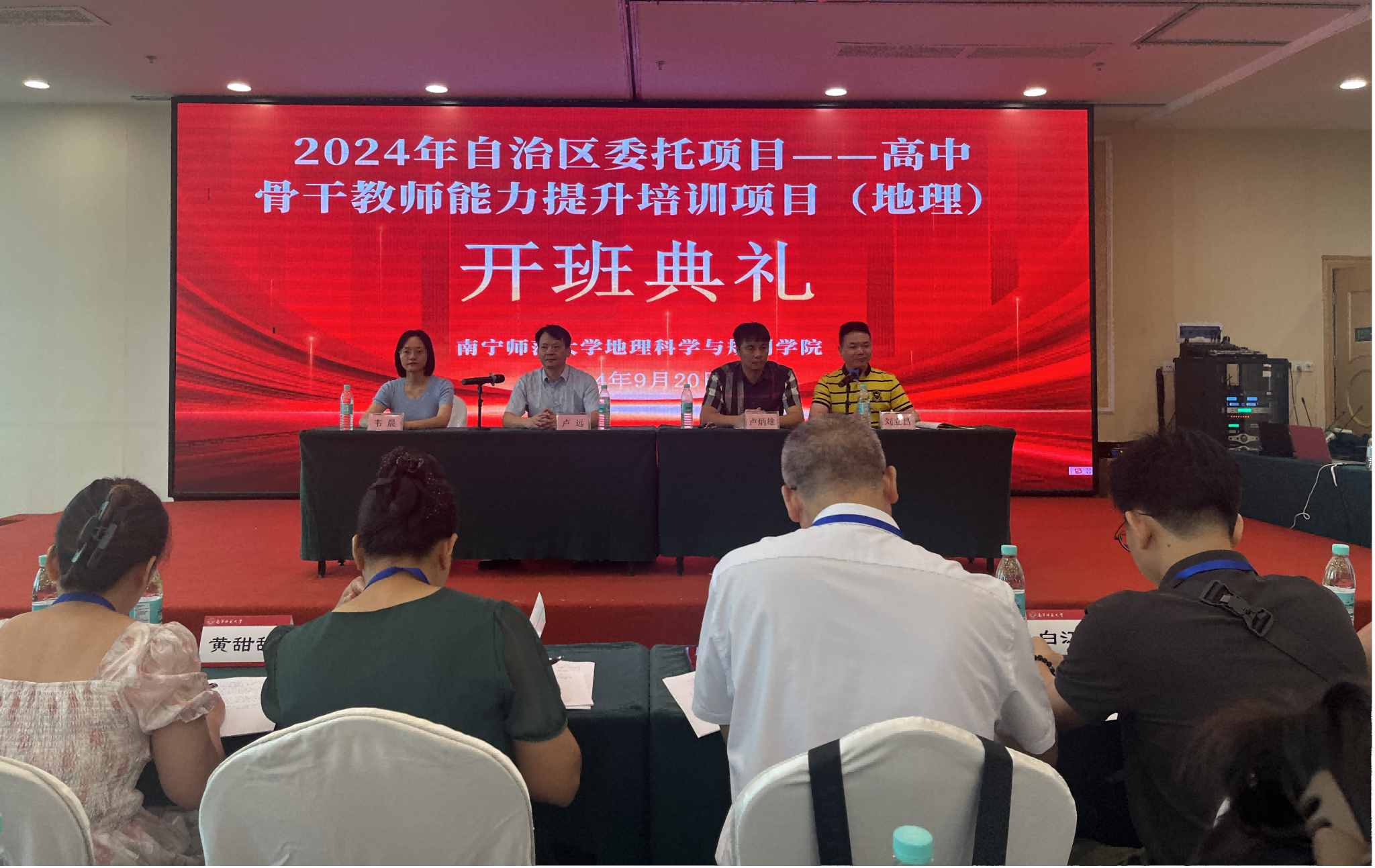 2024年9月20日,由公司承办的2024年自治区委托项目——高中骨干教师能力提升培训项目(地理)在南宁顺利举办,公司williamhill中国官方网站经理卢远、经理助理卢炳雄、刘立昌副教授、地理科学系副主任韦晨以及来自广西各地市的124名骨干教师出席了开班仪式。