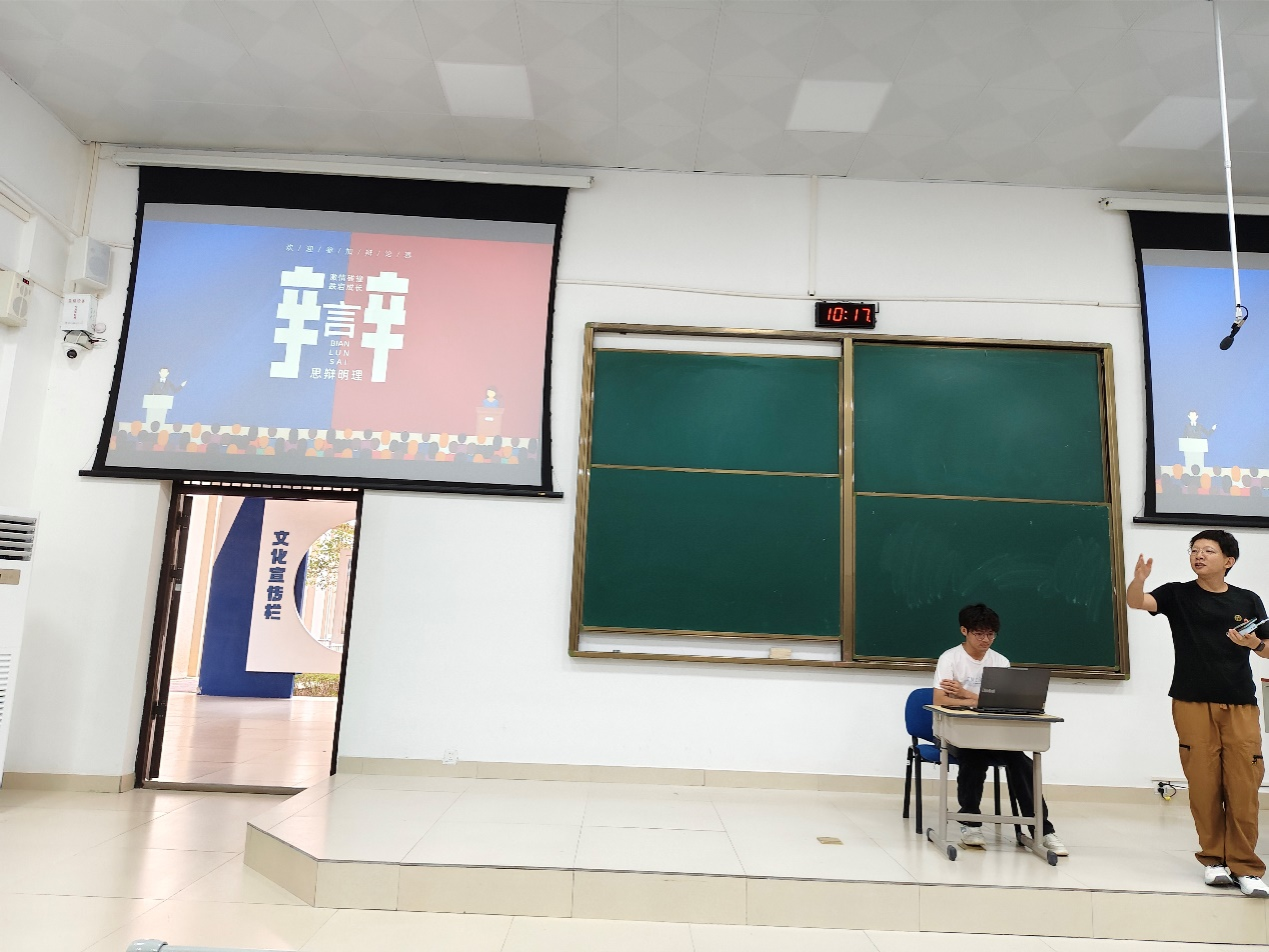 (主持人和老师正在主持辩论赛)