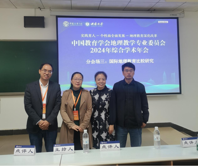 在10月29日上午举行的学术论文交流活动上,公司罗姗、徐梦龙、黄报玲、熊文栋、张莹等同学分别在“地理课程标准与教材研究”“现代地理信息技术的应用研究”“中学地理教学评价与考试命题研究”等分会场分享了他们的研究成果。公司张胜前教授负责“国际地理教育比较教育”专题报告的点评。