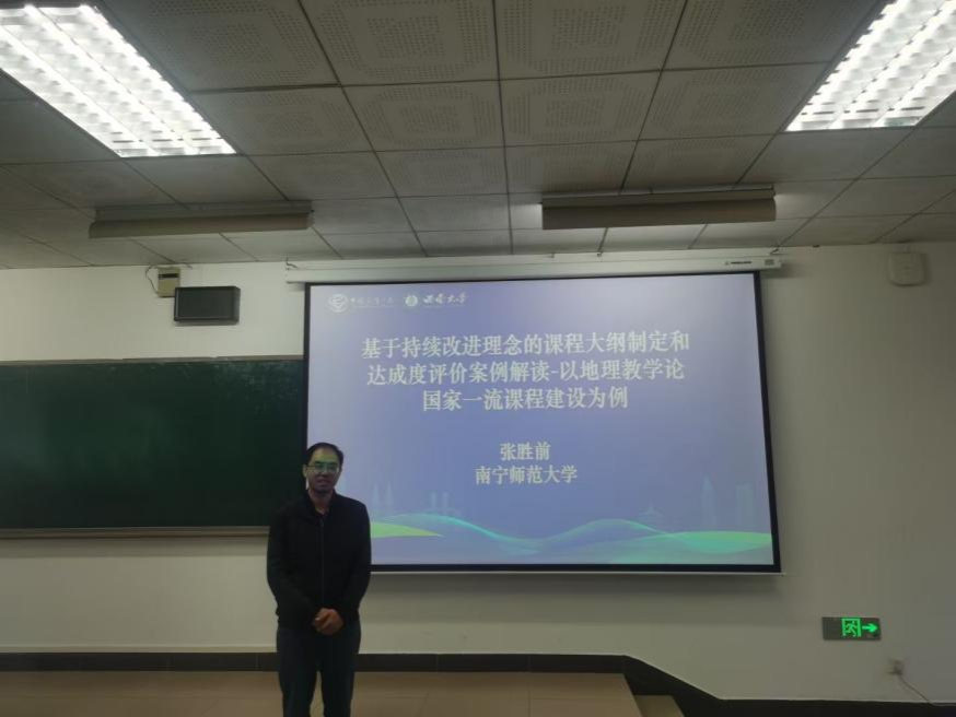 会上,公司张胜前教授在“地理教学模式创新与地理课程发展”第三分会场做了题为“基于持续改进理念的课程大纲制定和达成度评价案例解读——以地理教学论国家一流课程建设为例”的专题交流,分享了教学大纲的功能、教学大纲制定的核心要素和课程教学大纲达成评价的主要路径和课程达成报告的撰写等内容。此外,张胜前教授还参与了10月28日下午召开的“中学地理课”育人价值的专题论坛。