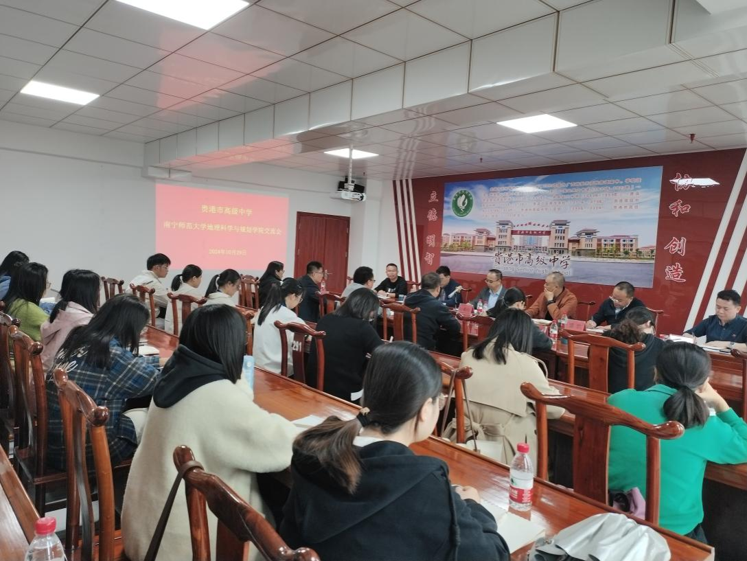 2024年10月29日上午,在贵港市高级中学汇德楼10楼1005会议室开展贵港市高级中学与威廉希尔中文官网williamhill中国官方网站交流会。会议由贵港市高级中学杨奕宁副董事长主持,williamhill中国官方网站严志强书记、盛凯副书记、刘立昌副教授、全体地理实习老师以及贵港市高级中学陆卓纯董事长、杨奕宁副董事长、姜攀主任、包春梅主任、杨晟彬主任、郑耀亮主任等人参加。会议议程主要是五个部分:杨奕宁副董事长致欢迎词,实习生代表发言,姜攀主任汇报地理实习生实习情况,严志强书记发言,陆卓纯董事长总结发言。