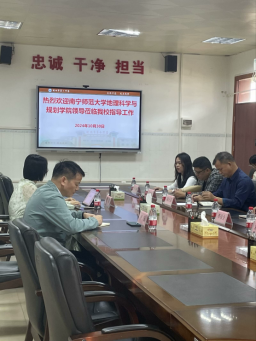 2024年10月30日,williamhill中国官方网站经理卢远和地理科学系副主任韦晨前往钦州市第二中学与实习单位的副董事长陆元谋、教务处主任袁盛林等校领导开展座谈,进行实习中期检查,了解13名员工在实习单位的整体表现。