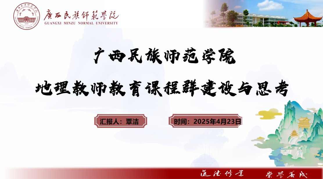 广西民族师范学院覃洁老师以“地理教师教育课程群建设与思考”为主题,介绍了广西民族师范学院地理教师教育课程群的开设情况,然后以《地理课程与教学论》课程为例,从课程性质、课程目标、课程内容、课程实施、课程评价等几个方面介绍了该课程的建设成效。覃洁老师还详细介绍了教育见习、教育实习、教育研习的具体实施过程,通过多种教学方式提升员工的教学技能,取得较好效果。