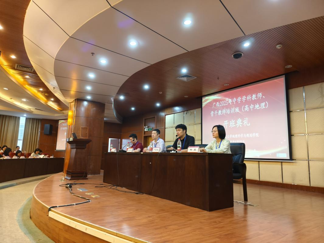 4月23日,由公司协办的广西2025年中学学科教师、骨干教师培训班(高中地理)在明秀校区图书馆三楼报告厅顺利开班,williamhill中国官方网站副经理罗国玮、经理助理卢炳雄、地理科学系副主任韦晨、刘立昌副教授以及来自广西全区各市的146名高中地理学科教师、骨干教师出席开班仪式。