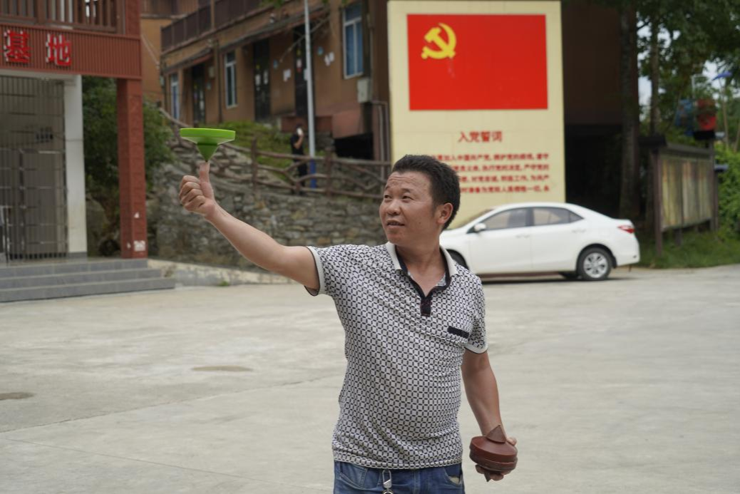 实践团参观走访了铜鼓坊、陀螺坊,白裤瑶陀螺技艺传承人向实践团展示传统陀螺玩法。