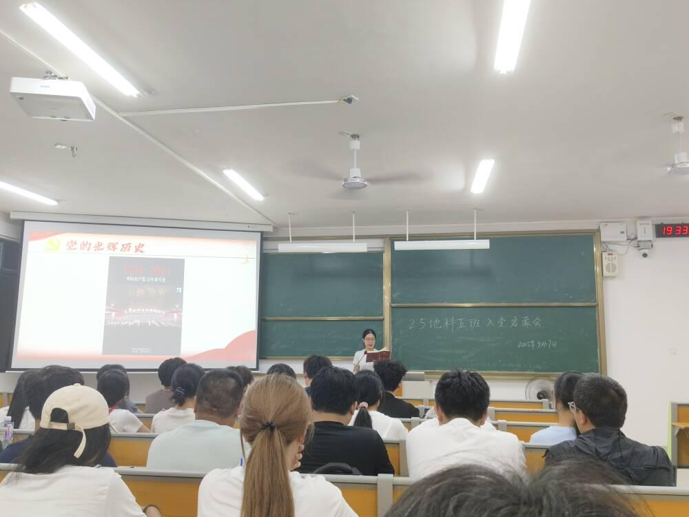 会议伊始,韦露媛同志通过播放视频,带领同学们回顾党的光辉历程。随后,她系统介绍了党的性质、根本宗旨和指导思想等基础知识,并围绕“为何入党”这一主题展开阐述,详细说明了申请入党的条件以及党员的基本要求。接着,她向同学们介绍了本科生地科第二党支部的基本情况,重点讲解了“三会一课”制度。最后,韦露媛同志就发展党员的工作流程、相关要求以及入党申请书的撰写规范作了说明,并通过展示各类党组织活动,为同学们提供了清晰的指引。她鼓励有入党意愿的同学积极向党组织靠拢。