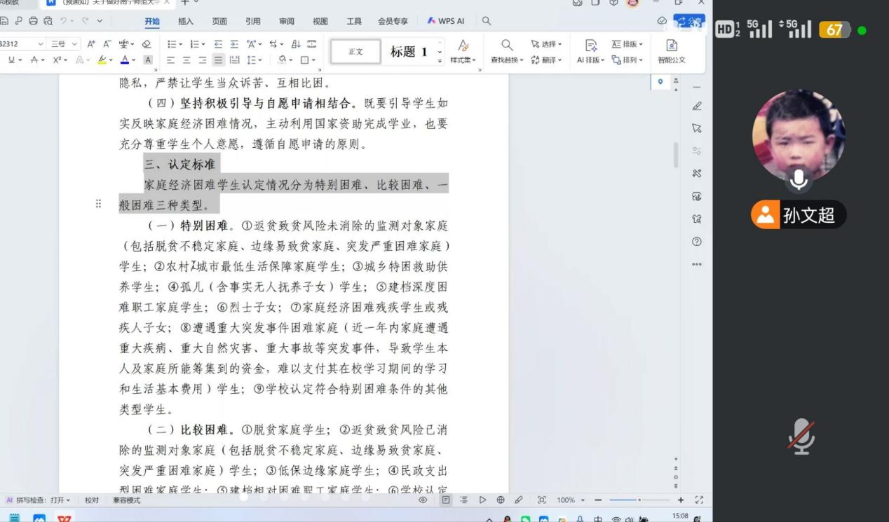 9月21日下午,williamhill中国官方网站勤工部顺利召开家庭经济困难员工认定培训工作线上会议。本次会议由孙文超老师主持,学院盛凯副书记出席并提出工作要求,勤工部员工负责人及22-25年级各班级资助委员共同参会,为后续认定工作规范、有序推进夯实基础。