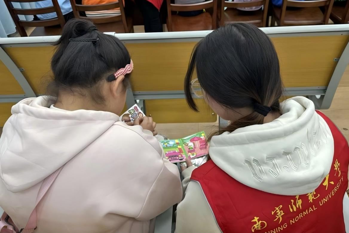 (志愿者陪同小朋友阅读安静书)