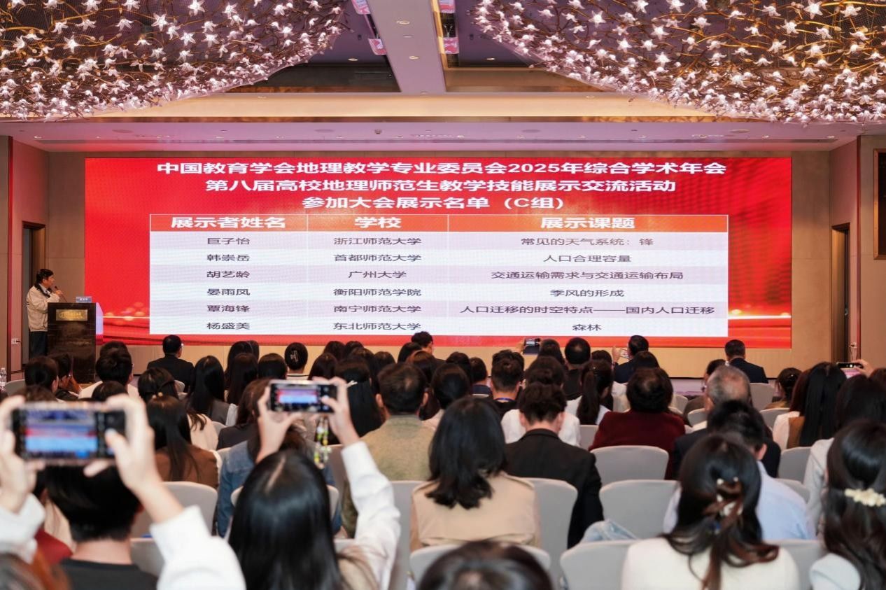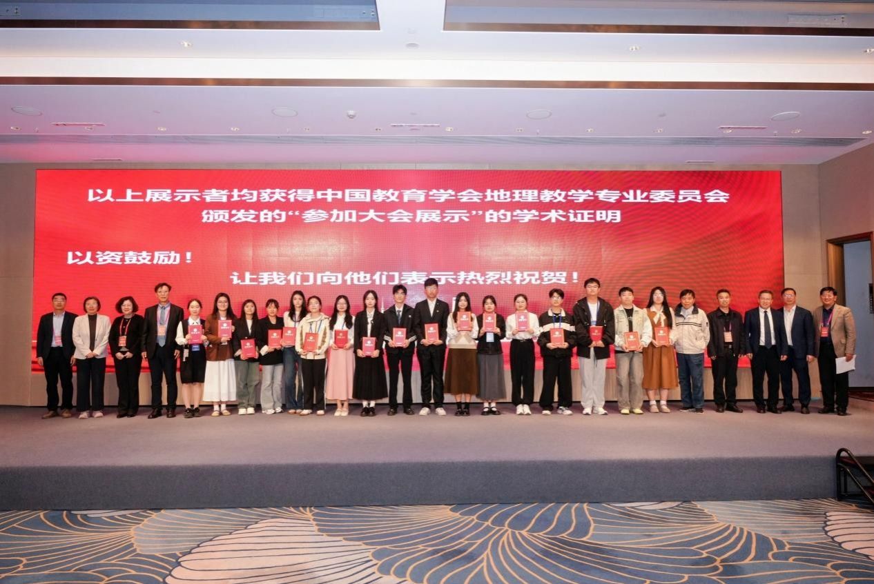 23—26日,公司地理师生代表还参加了学术年会的其他多项活动。其中23日下午的“全国高师地理学术探讨”,聚焦师范院校地理专业的改革与创新,为地理学科优化人才培养方案、强化师范特色提供了宝贵思路,其中“人工智能赋能地理教学”的专题报告,揭示了AI技术重塑未来课堂的无限可能,为未来公司地理教学改革与科研注入新动能;24日上午的学术年会开幕式与大会特邀报告,介绍了地理学科发展和地理教育研究的最新前沿与未来趋势。24下午的“中学地理教师教学交流展示”,通过走进真实课堂,观摩一线名师如何将理论转化为实践,让大家对“如何上好一堂地理课”有了更直观、更深刻的理解,也切身感受到了教学一线的活力与挑战。25日的“第二届地理教材建设与研究高峰论坛”,围绕教材的编写理念、内容创新与使用策略展开,深化了教师对国家课程资源核心载体的认识,对提升教材分析与运用能力具有重要价值。在学术年会的闭幕式上,员工代表上台获颁展示活动证明。