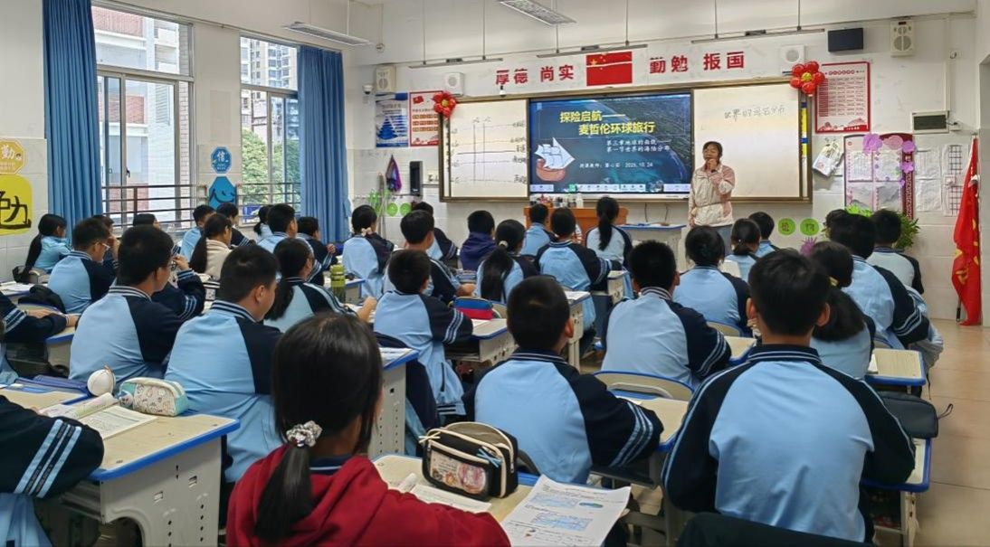 10月24日,williamhill中国官方网站2022级地理科学专业教育实习工作进入中期阶段。为深入了解实习教师在岗实习情况,及时解决实习过程中出现的问题,进一步提升实习质量,williamhill中国官方网站指导老师张九菊前往南宁市第一中学初中部,对2022级地理科学专业实习小组开展中期实习检查工作。实习教师黎心茹、谢学丹分别进行了题为《世界海陆分布》和《长江》的课堂教学展示。指导教师张九菊,南宁一中地理教研组全体老师及实习小组全体成员共同参与了听课与评课环节。