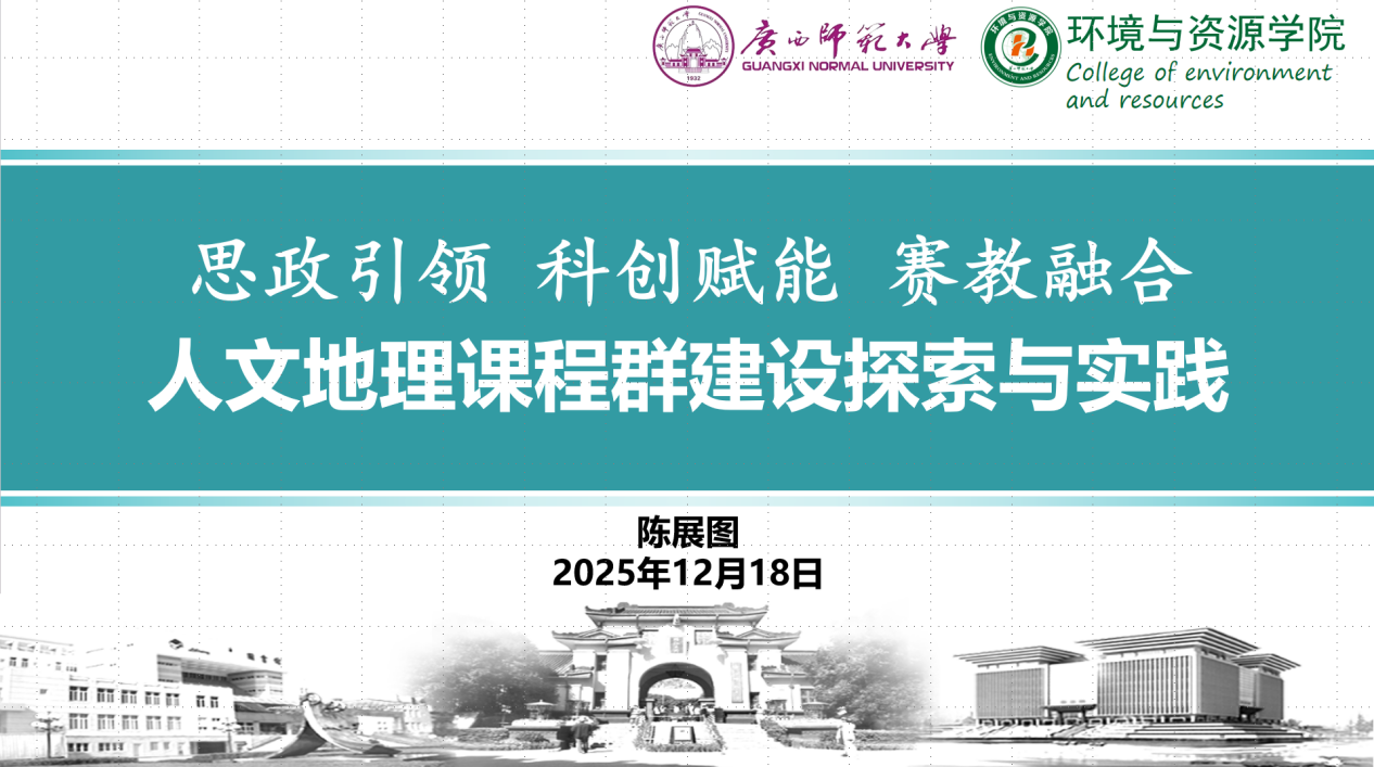 广西师范大学陈展图副经理以《思政引领科创赋能赛教融合——人文地理课程群建设探索与实践》为题,介绍了该校人文地理课程教师团队和人文地理课程群建设概况。他通过典型案例,分享了在思政引领、课程内容优化、线上与智慧课程建设、地理实践力培养、科研赋能和赛教融合等方面的具体做法,以及在教学研究、课程建设与员工发展取得的成效,最后从课程团队组织、教学内涵和内容建设等方面提出了未来改进方向。