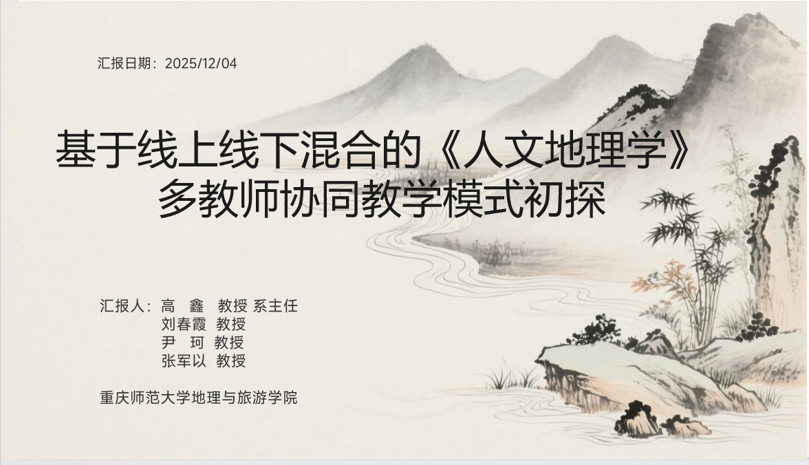 2025年12月4日晚,教育部地理科学专业虚拟教研室成功举办了第二期“人文地理课程群系列教研活动”。本次活动以“人文地理课程群建设”为主题,旨在促进高校间经验交流与资源共享,推动人文地理课程改革与高质量发展。活动由虚拟教研室负责人张胜前教授主持,来自西南大学、重庆师范大学、黔南民族师范学院等全国多所高校的地理教师与专家齐聚云端,共同围绕人文地理课程建设展开了深入研讨。