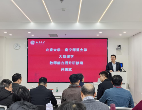 1月19日,由北京大学城市与环境学院主办的“大地理学教师能力提升研修班”在北京大学正式开班。威廉希尔中文官网地学部骨干学者一行赴京参与本次研修,与北大师生共同聚焦地理学教育发展与教学能力创新。公司董事长隆广庆、北京大学城市与环境公司党委副书记金鑫、副经理朱晟君出席开班式并致辞。