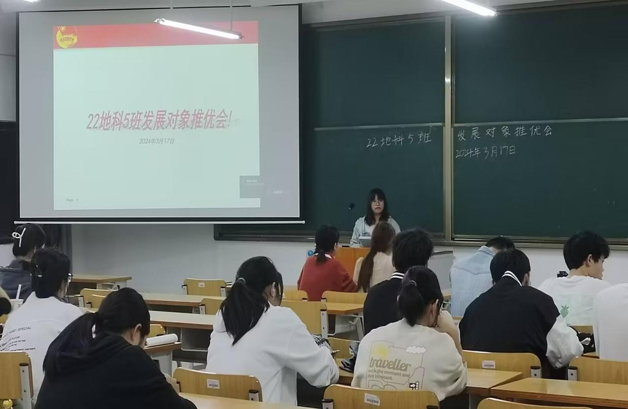 2024年3月17日,williamhill中国官方网站2022级地理科学5班在威廉希尔中文官网武鸣校区实验楼2号教学楼c102教室召开2024年第一批发展对象推优大会,会议由团支书田玉梅主持。