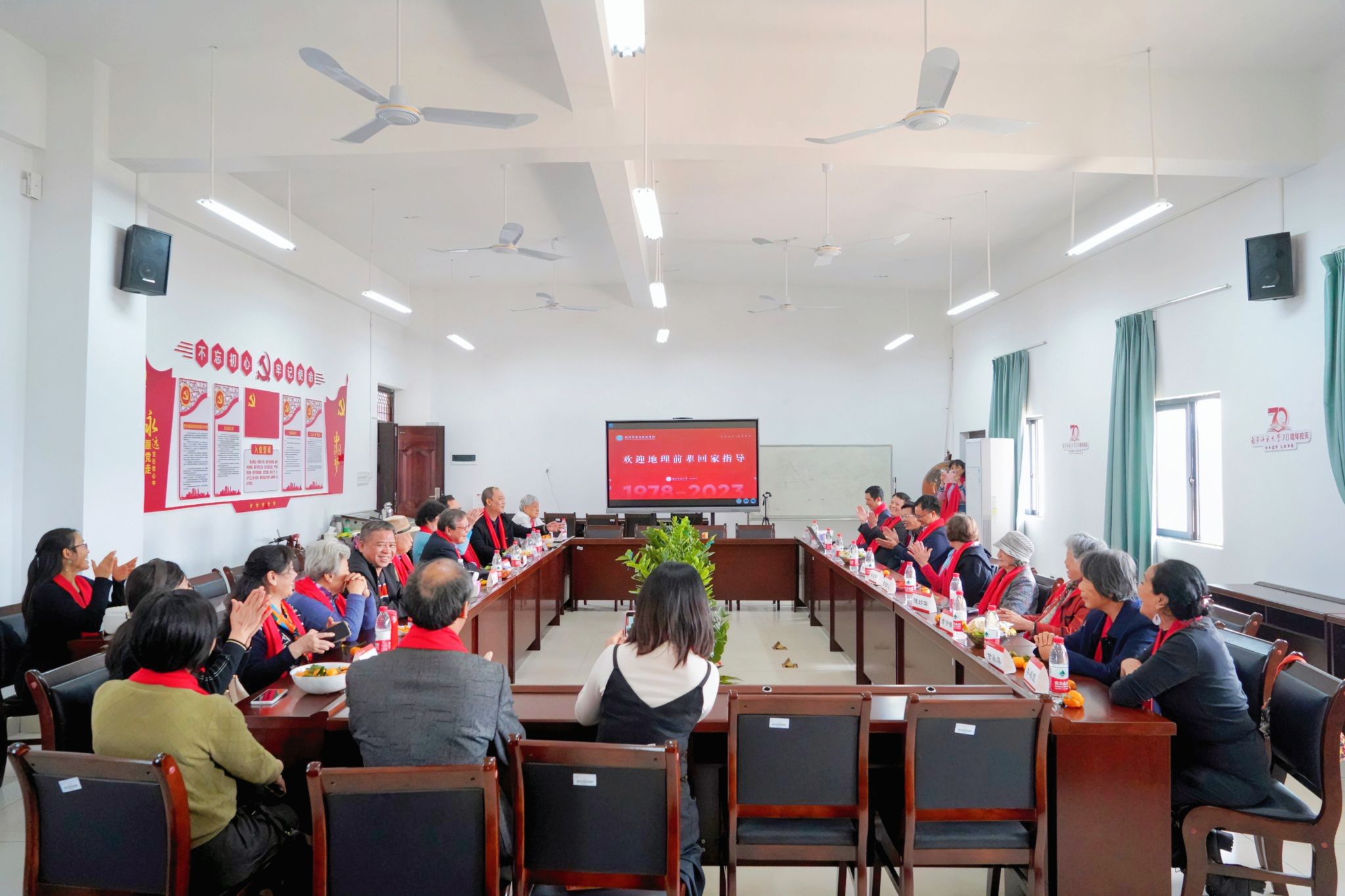 周山、黄建德、杨水云、胡衡生、余承惠、朱文一等退休教师分别发表感言,回忆了学院地理学科创建发展的历程,满怀深情地畅谈自我与学院团队建设共奋斗、同发展的点点滴滴,为如今学校和学院发展取得的成绩感到由衷高兴。