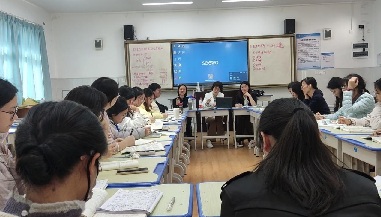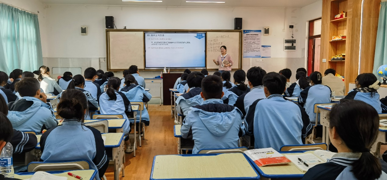 总结会结束后,廖伟业副教授、韦晨副主任等一行人一同前往高三楼三楼地理专用教室,一同听取贺佳丽同学《海洋与人类》和邱大成同学《自然环境的地域差异性》的汇报课来检验这段时间以来的实习成果。两节课课堂氛围良好,同学们积极配合,两位实习老师能够能够研读课标,整合教材,较好把控教学重难点,同时设计探究问题,在教学过程中较好落实地理核心素养与关键能力。