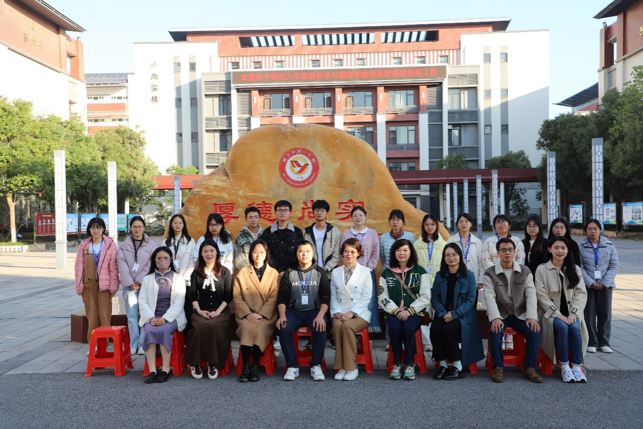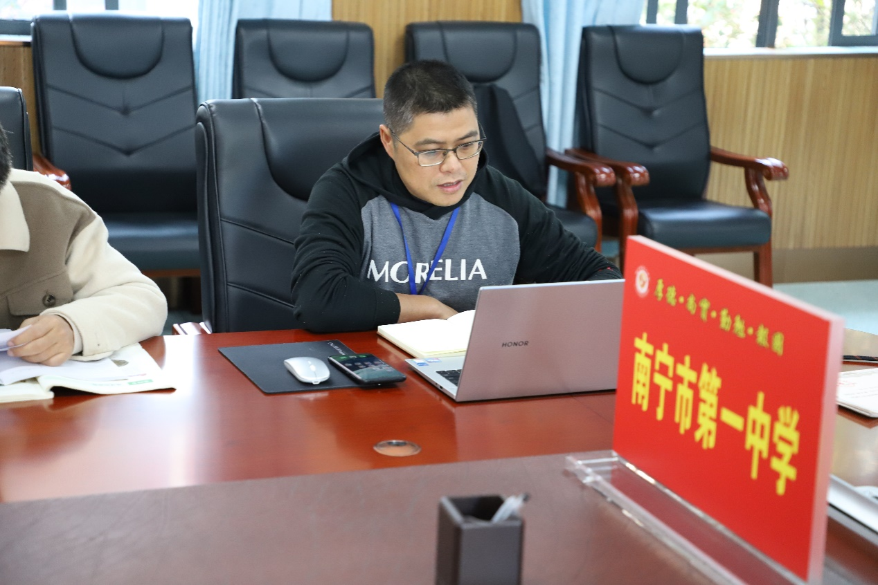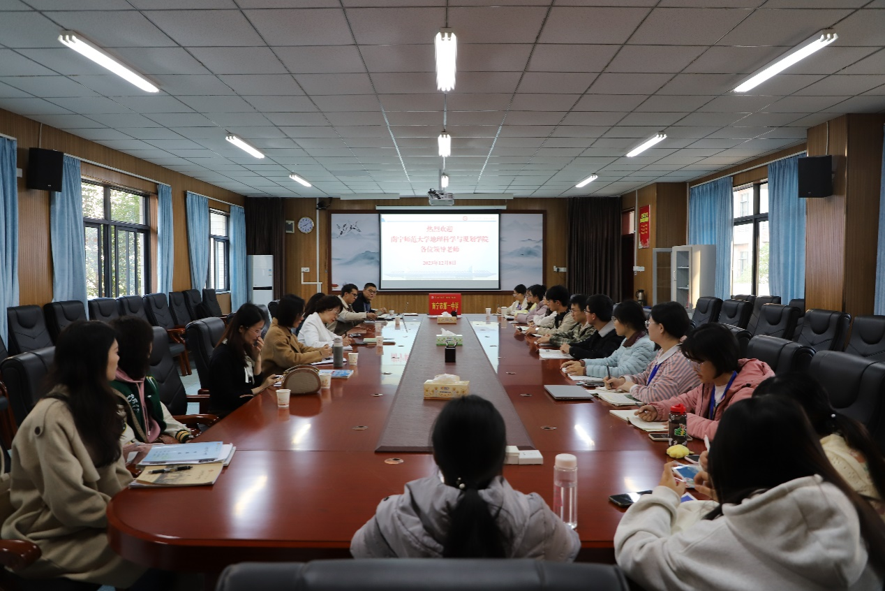 2023年12月8日上午8点,威廉希尔中文官网williamhill中国官方网站(以下简称:地理学院)2021级陶行知实验班13名同学在学院指导教师廖伟业副教授和韦晨副主任的带领下与南宁市第一中学(以下简称:南宁一中)在2号楼会议室召开教育研习与实习阶段总结会,会议由南宁市第一中学教务处主任陈兆坚主持。学校工会主席张清、全体地理学科指导教师、部分班主任及公司2名教育硕士一同参加总结会。
