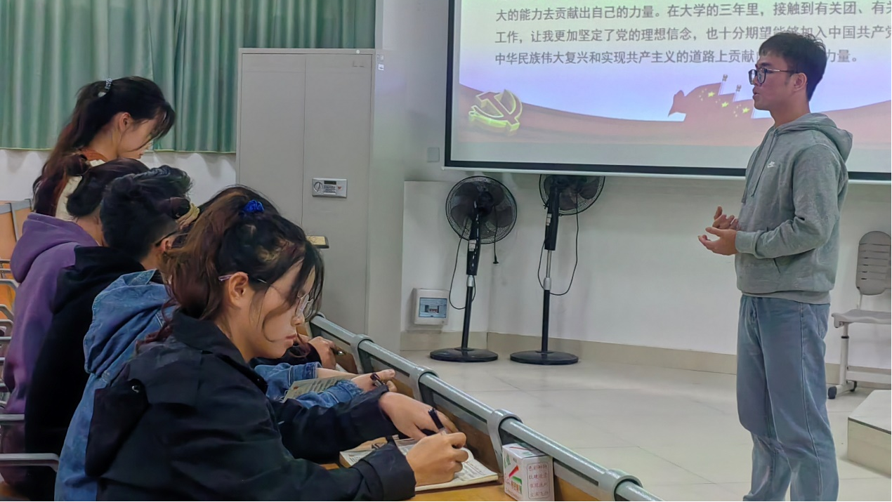 会上,推优同志依次上台进行自我介绍,随后由罗岩同志宣读《民意调查表》,台上同志抽取时事问题并回答,最后与会同志对推优对象进行优缺点评价和提问。在整个会议中,凌凤辉等19位同志从实际出发,认真汇报个人情况,表达入党初心,积极向党组织靠拢。在优缺点评价环节,与会同志对推优对象在思想、工作、学习、生活等方面的培养考察情况进行说明,诚恳地指出其不足之处,望其进步。最后,在各位党员同志和积极分子的共同努力下,本次会议圆满结束。