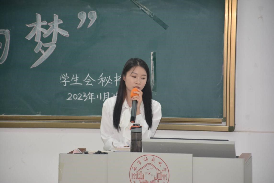 会议开始,四位员工代表先后上台发言。优秀员工代表黄妍瑛和梁玲倩分别分享了她们的学习方法与生活经验,讲述了她们的学习生活。她们还为同学们解答了如何在当今“内卷”的环境学会休息和享受生活的问题,提出了许多实质性的建议。梁玲倩强调“要学会热爱,热爱生活,热爱自己的专业”,她以自身专业的学习经历为例来教会同学们如何热爱并学好自己的专业。第三和第四位优秀员工代表陈敏茹和罗芯曼都与同学们谈论自身的努力及发展方向,使同学们重视对大学四年规划的思考。她们希望同学们在处理各种事务上都能学会复盘和反思,建议同学们以学习为重心,养成课前预习课后复习的习惯,多向优秀的人请教,多实践、多试错。