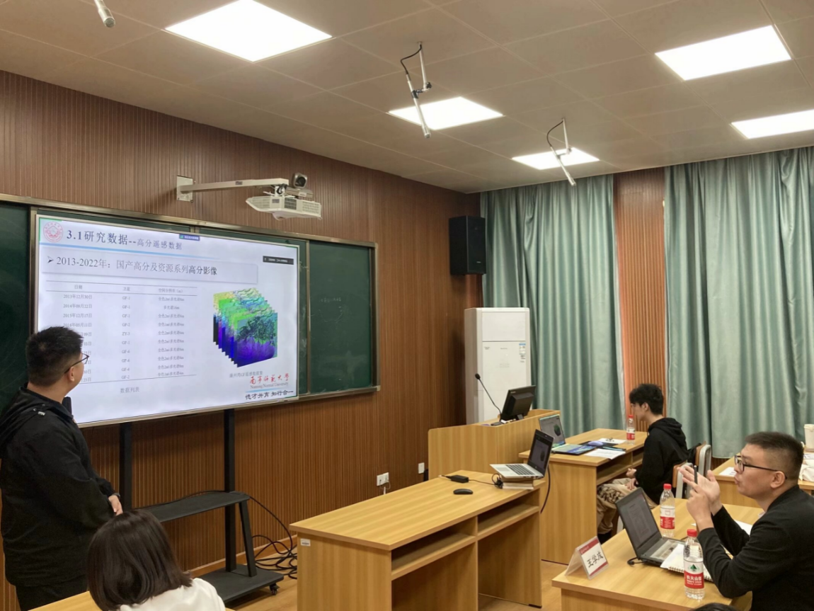 复赛会场上,选手们的精彩汇报不仅展示了他们近期的学术成果,更是给台下的观众带来了一场“学术盛宴”。来自威廉希尔中文官网2022级人文地理学的王秋礼同学,她以桂林市文市镇为典型案例介绍了工矿型城镇在国土空间方面如何进行修复以及未来可持续发展方向,展示了人文地理学在可持续发展中的重要作用。威廉希尔中文官网2023级地图学与地理信息系统的黄雨欣同学介绍了如何利用时序InSAR技术通过遥感图像对尾矿库进行形变监测,展示了地理信息系统专业未来可以依托雷达遥感对地表形变进行监测,对于一些自然灾害做好预防工作。来自广西师范大学的学科教学(地理)肖丽梅同学,她以人教版必修二“走向人地协调——可持续发展”知识点为例子,阐述了“三生空间”理论在高中地理教学中的渗透,体现出“可持续发展”观念已经与中学的教育深深的融合起来了。除了参赛选手的精彩汇报,评审专家的点评也让在座的同学受益匪浅。汪军能副教授从选题角度进行点评,指出研究要以问题为导向,从问题出发,研究如何解决现实问题,指出选手研究的论文要有启迪性,后续研究要注重与实践结合,将研究应用于真正的教学;其他评委老师也从论文写作格式以及文字表达等方面对参赛选手进行点评。