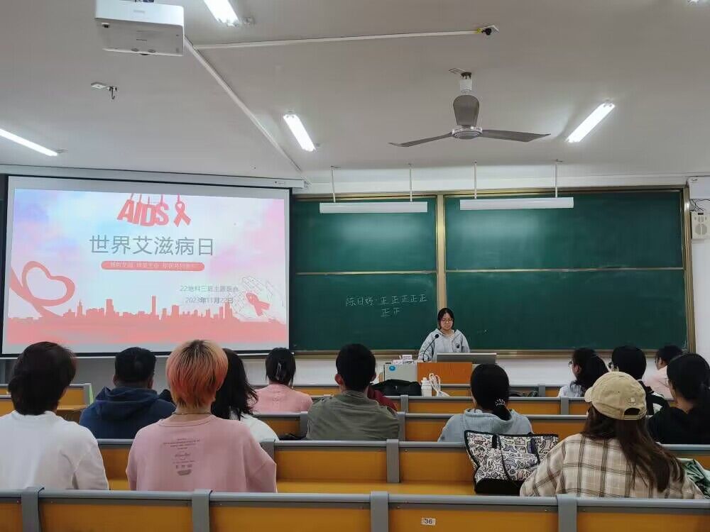 首先,由各班级组织开展防艾主题班会,让各同学了解艾滋病基本知识、各种易感染艾滋病的危险行为、青年员工艾滋病疫情等内容。同时,号召员工自觉行动起来,知艾防艾,用爱心托起红丝带,营造良好的校园环境。