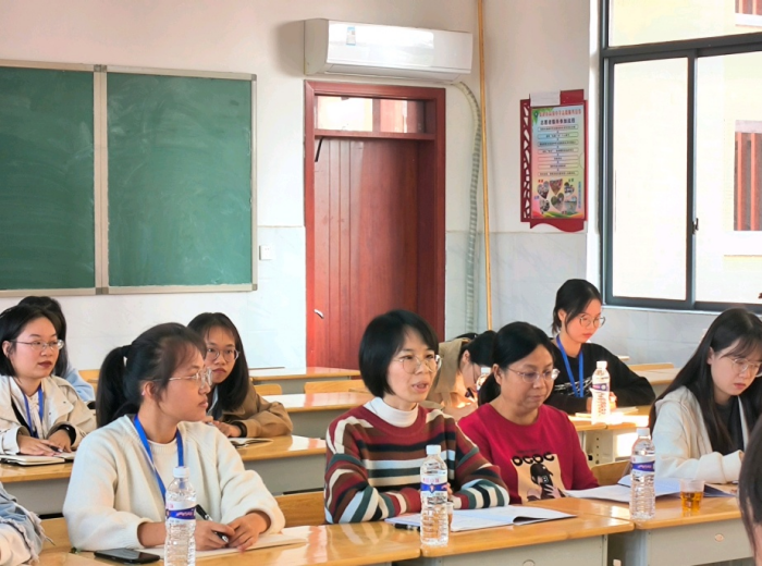 (带教老师张九菊与实习教师对公开课内容点评交流)