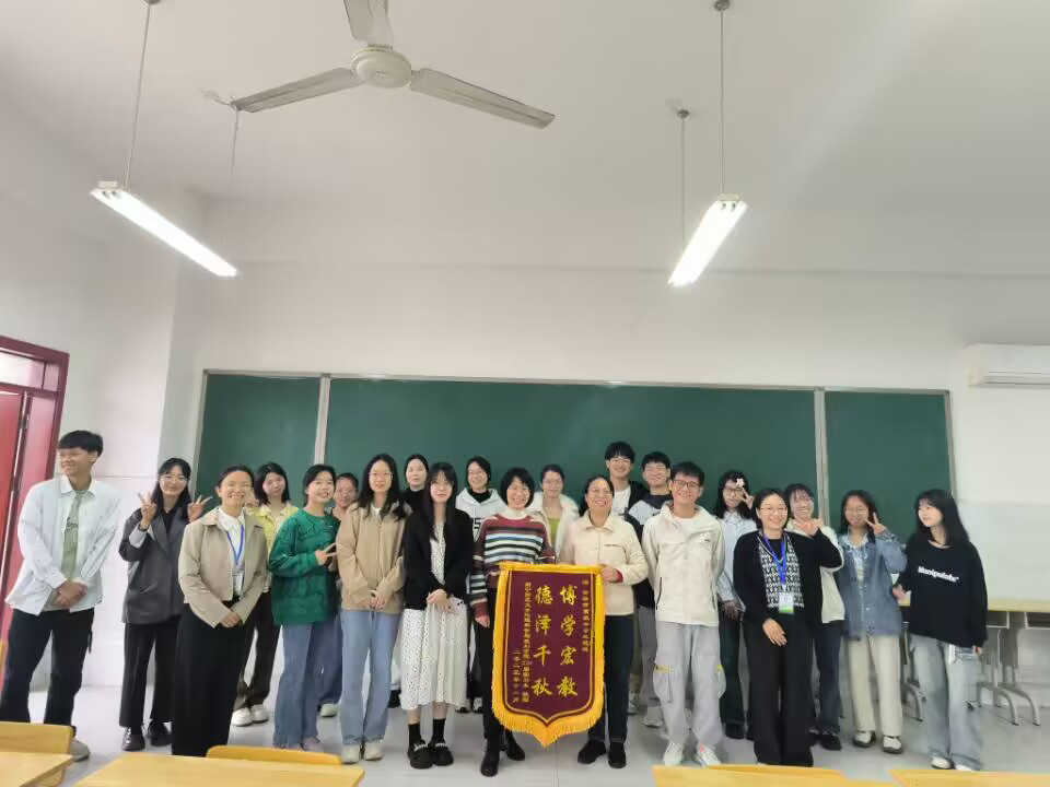 (贵高实习小组给贵高地理组送锦旗合影留念)