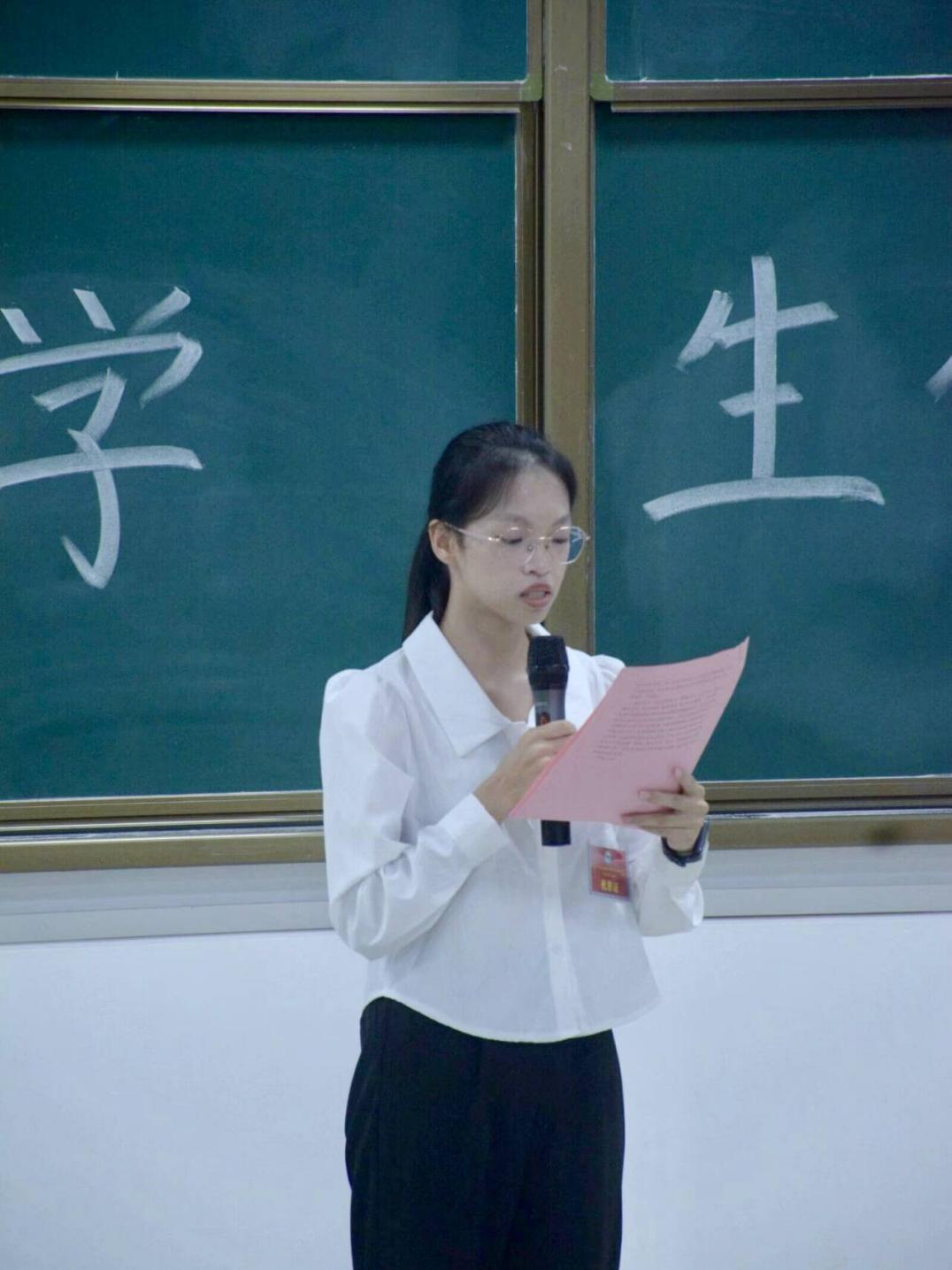 新一届当选学院员工会主席团成员黎丘雨同志宣读大会倡议书,号召全体员工干部要始终深入学习贯彻习近平新时代中国特色社会主义思想,在党的领导、共青团的指导下,秉持“全心全意为同学服务”的宗旨,践行“德才并育,知行合一”的校训和“明德至善 格物致知”的院训,把青春奋斗融入时代洪流,在推进强国建设、民族复兴伟业中展现新时代青年的担当。