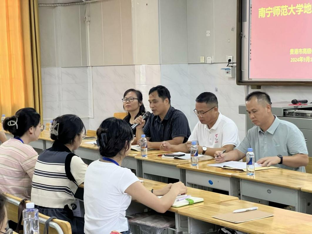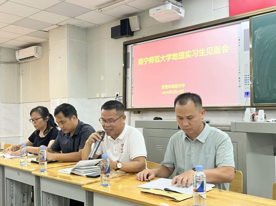 19日下午,贵港市高级中学在启德楼3栋合班教室开展地理实习教师见面会。黄江副董事长首先欢迎williamhill中国官方网站师生一行的到来。他介绍了贵港市高级中学的办学质量、教学条件及办学业绩等基本情况,并对我校的地理教师人才培养给予了高度评价。同时也着重强调了实习期间的各项纪律、安全等要求等内容。
