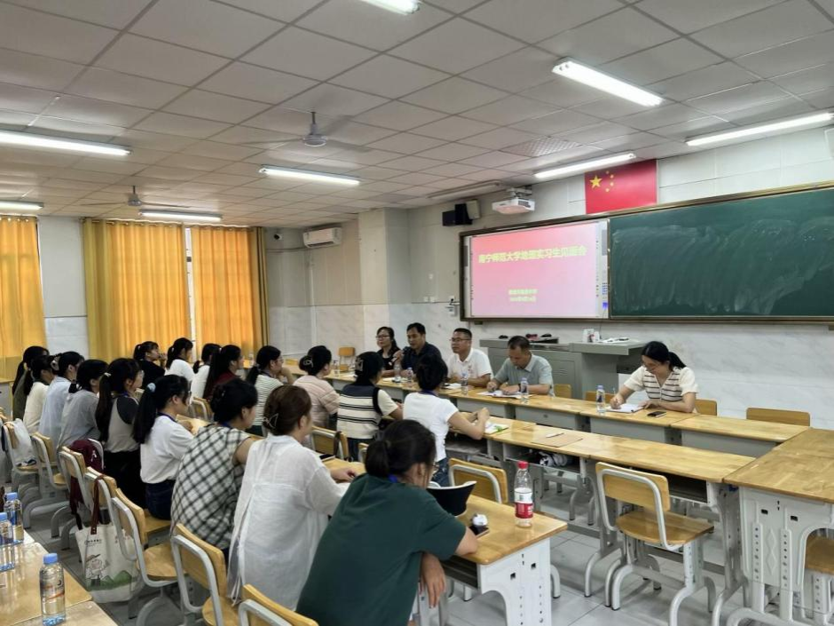 黄育军主任、地理组组长郑耀亮、包春梅副主任分别介绍具体的实习情况等有关内容。