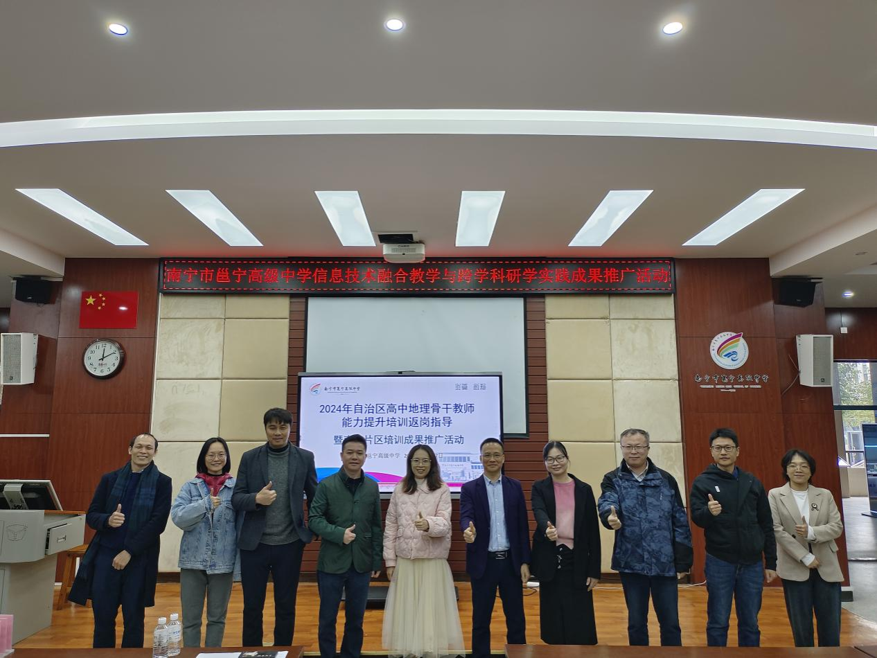 公司专家团队与外聘专家在扶绥县第三中学、百色田阳高中和南宁市邕宁高级中学开展了学员示范课观摩与评课、专家微专题报告等活动;在柳州市柳江中学岜公塘校区听取了该校市级地理学科基地建设成果展示汇报并对后续建设给予针对性指导;在南宁市第八中学、马山县马山中学则深入学员常规课堂听课并作课后交流指导。通过形式多样的活动,返岗指导工作以具体学员为对象,依托学员所在学校开展地市片区的返岗指导暨培训成果推广,实现了“以点带面,辐射带动”的工作目标。