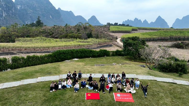 随后,同学们漫步明仕田园,共同欣赏独特的喀斯特地貌和优美的自然风光。明仕田园阡陌纵横,村落古朴,展现出宁静祥和的田园风光,峰峦叠翠,河流蜿蜒,清澈见底,倒映着蓝天白云,构成一幅幅美丽的山水画卷。
