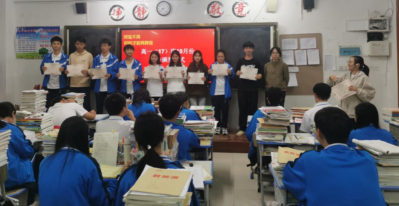 (图4实习教师韦铖埮高一17班期中考试颁奖)