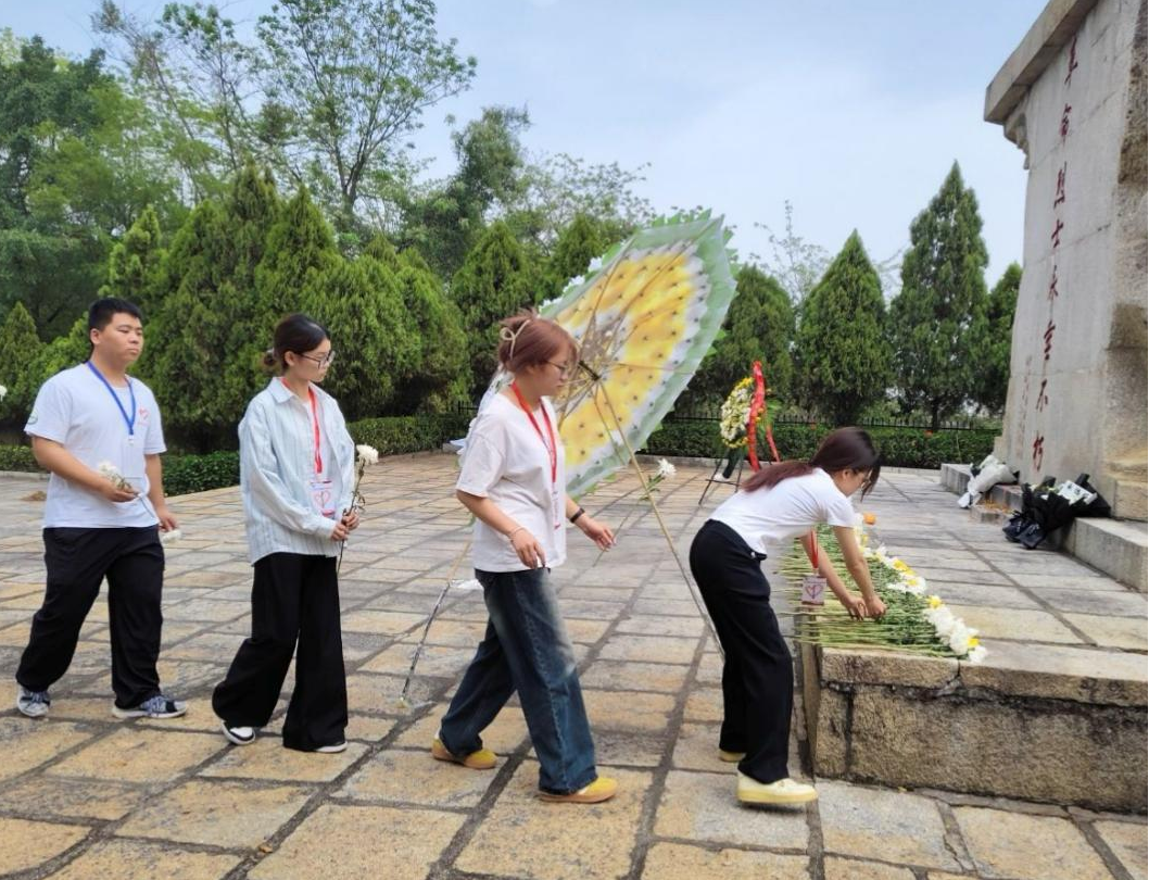 (志愿者为先烈献花)