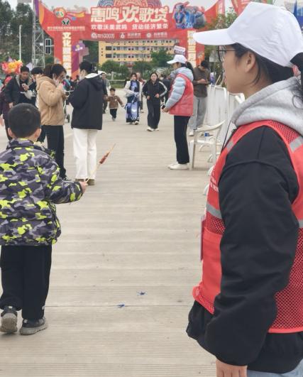 在非遗文化和美食展区,志愿者协助摊主布置展位,为游客讲解传统文化;在斗牛斗马竞技场,他们引导观众有序观赛;在停车场和外场,他们耐心疏导交通,确保活动安全有序进行。整个活动过程中,志愿者们始终以饱满的热情引导游客,积极协助活动流程,有力维护现场秩序,展现了公司学子的饱满热情和实践风采。
