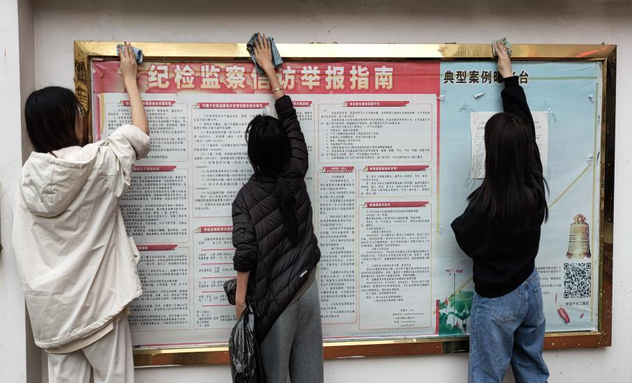 活动中,志愿者们手持抹布、扫帚、拖布等清洁工具,在社区服务楼的一至四楼展开清扫。在工作人员的安排下,志愿者们有序开展清洁工作,一组志愿者负责清扫地面,一组志愿者负责擦拭门窗及把手的擦拭,还有一组志愿者负责物品的整理与归位。在他们的分工协作下,室内环境焕然一新、整洁有序。完成室内清洁后,志愿者们对室外区域也进行了全面清扫,为社区营造了干净整洁的公共环境。活动最后,全体志愿者在社区服务楼合影留念,此次志愿活动圆满结束。