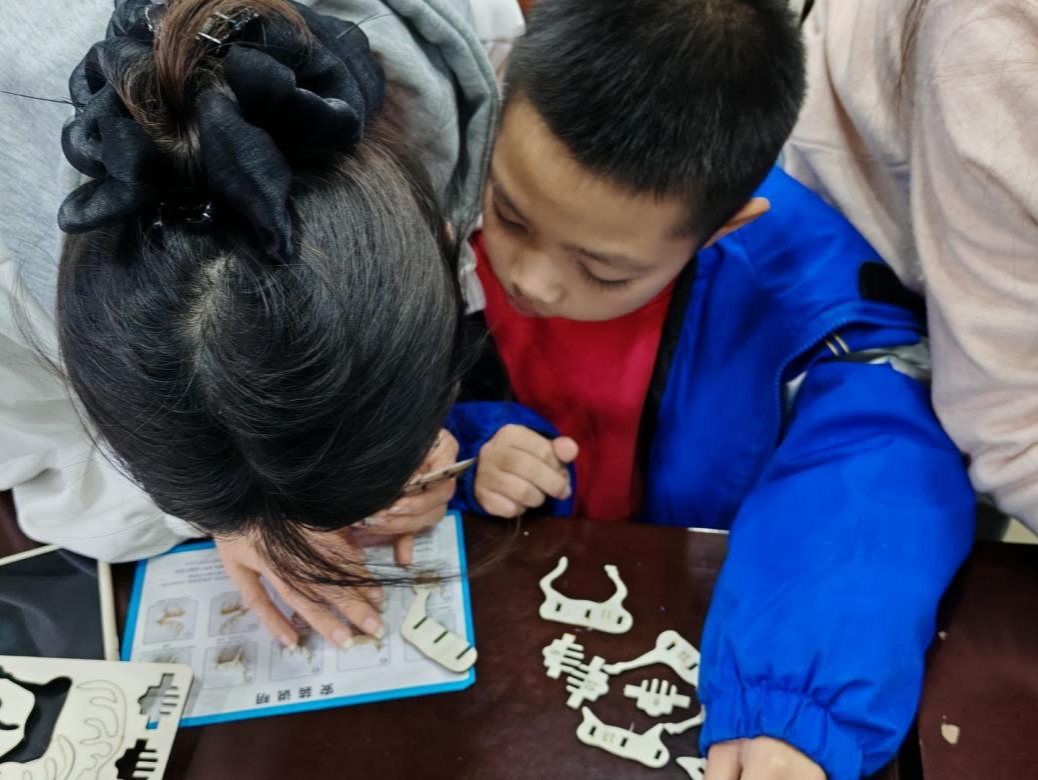 活动伊始,志愿者为小朋友科普了“保护森林,净化地球”相关知识,带领小朋友认识了保护森林、保护环境的重要意义。紧接着,在手工实践环节中,志愿者耐心地陪伴小朋友制作木质立体昆虫动物模型和拼贴画,一块块木头、一张张彩纸逐渐变成了栩栩如生的模型和充满创意的拼贴画,这锻炼了小朋友的动手能力,激发了他们对自然的浓厚兴趣和创造力。随后,在地理知识竞答环节中,小朋友踊跃参加,积极回答问题,他们思维敏捷,主动抢答,稚嫩的声音中满是对知识的渴望。最后,本次活动在一片欢声笑语中圆满落幕。