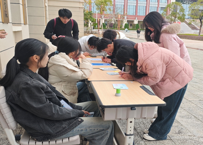为传承与弘扬不朽的雷锋精神,2025年3月5日,williamhill中国官方网站青年志愿者协会(以下简称地理学院青协)组织志愿者在地源楼大厅开展 “学习雷锋精神,签语寄愿同行”寄语活动。