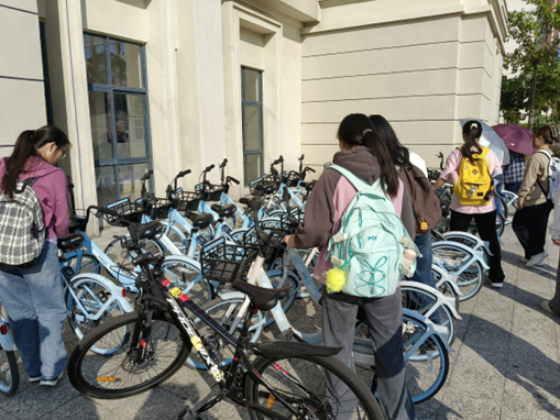 活动伊始,全体同学在教学楼前集合,拍摄合照留念。随后,大家分成若干小组,去到不同区域开展摆放单车工作。经过同学们的努力,教学楼前原本杂乱停放的共享单车变得整齐有序。