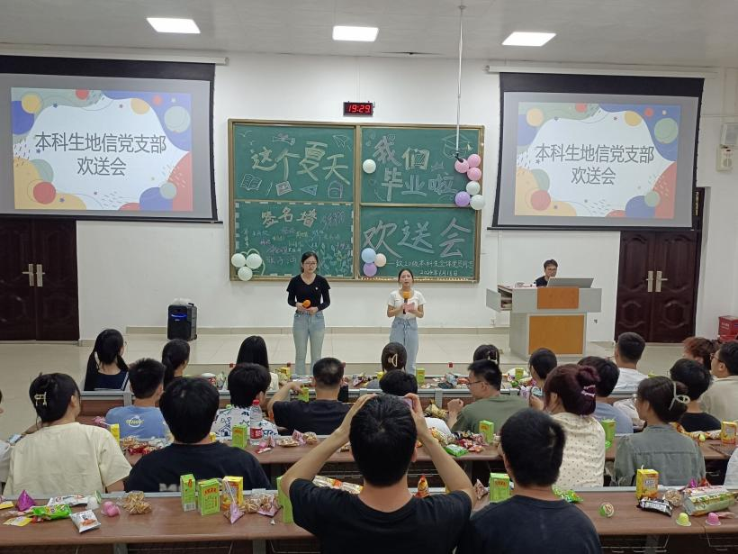 6月16日,本科生地信党支部在威廉希尔中文官网武鸣校区地源楼B107教室召开本科生地信党支部2024届毕业生党员欢送会。活动由綦文嘉和韦妙茵同志主持,全体党员参会。