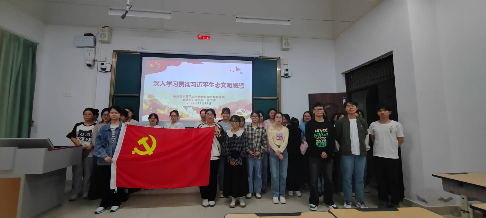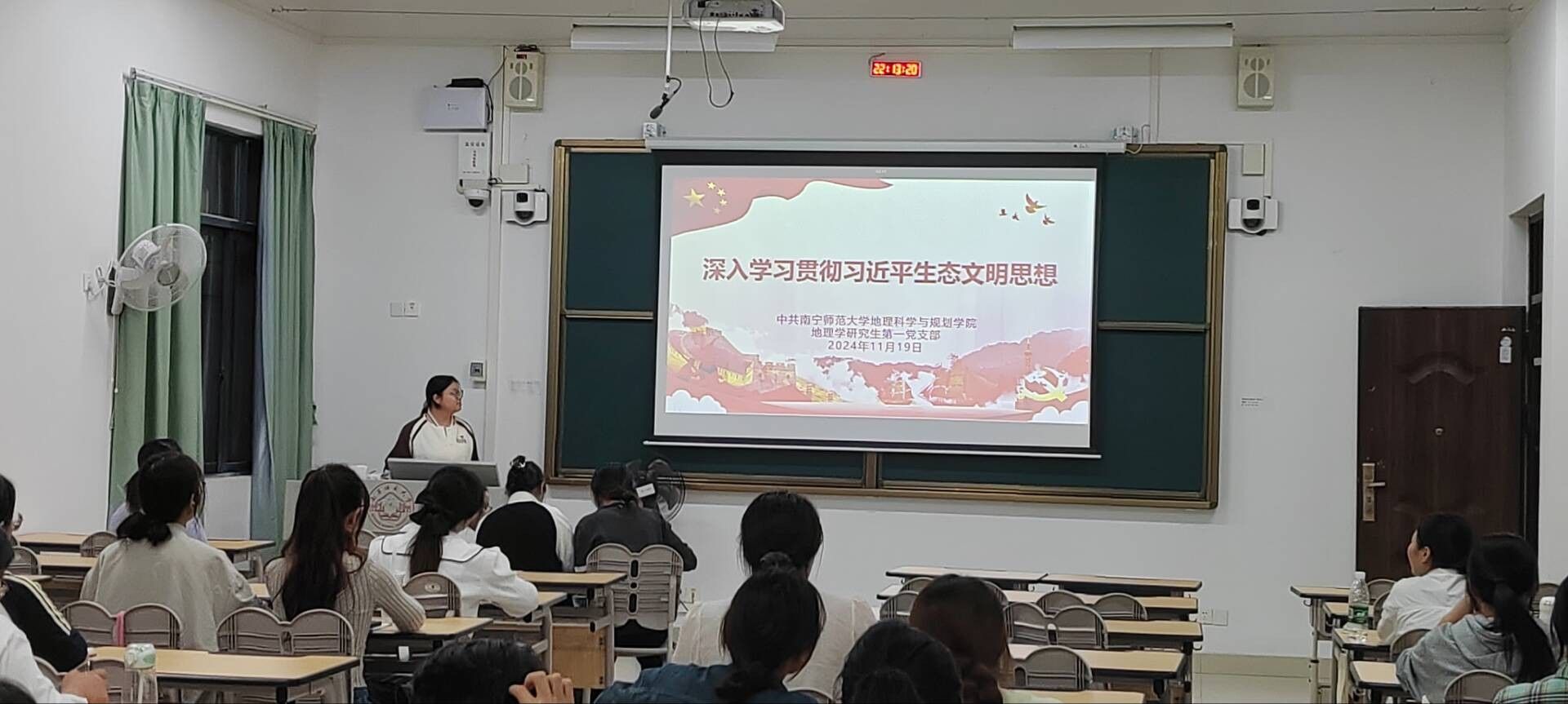 2024年11月19日,williamhill中国官方网站研究生第一党支部在武鸣一号教学楼411教室开展“深入学习贯彻习近平生态文明思想”党日活动。会议由朱淑妍同志主持。