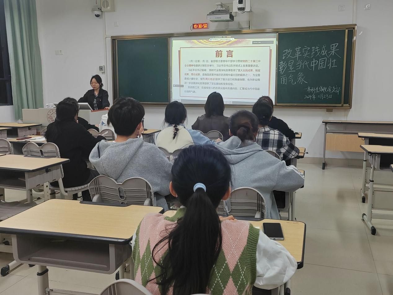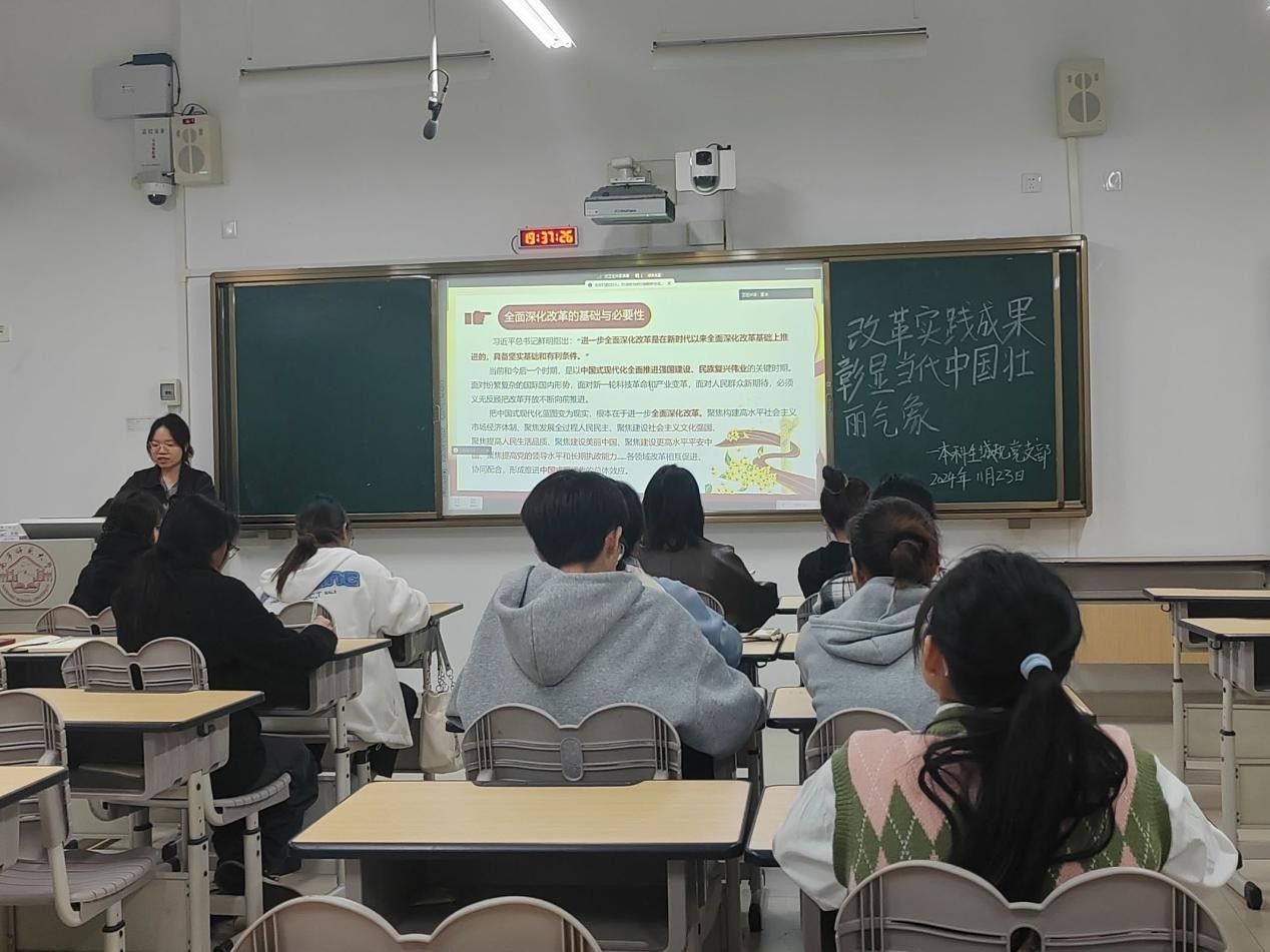 为深入学习贯彻习近平总书记在省部级主要领导干部专题研讨班开班式的重要讲话精神,重点把握全面深化改革中所取得的卓越成就。2024年11月23日,本科生城规党支部于武鸣校区1号教学楼203教室开展以“改革实践成果彰显当代中国壮丽气象”为主题的党小组会议,会议由本科生城规党支部李宇凤同志主持,支部全体党员参与。