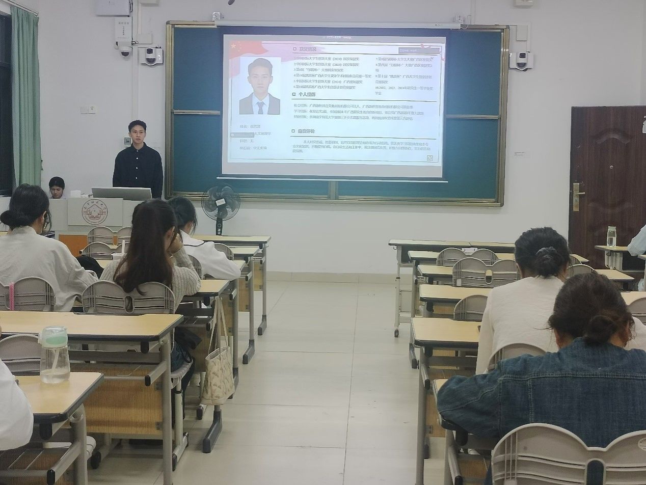 2024年11月19日,地理学研究生第一党支部在武鸣校区1号教学楼411教室召开2024年第二批发展对象推优大会。本次会议由党支部书记劳晓帆同志主持,支部全体党员和各班积极分子共同参会。