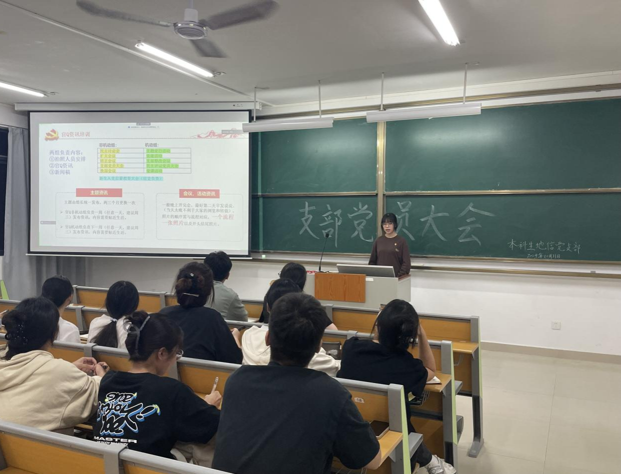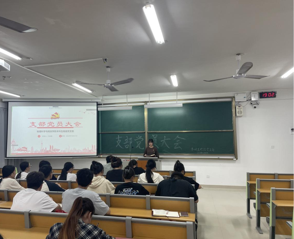 2024年10月31日,williamhill中国官方网站本科生地信党支部在威廉希尔中文官网武鸣校区实验楼2-A201召开支部党员大会,会议由支部宣传委员方家鑫同志主持,全体党员参会。