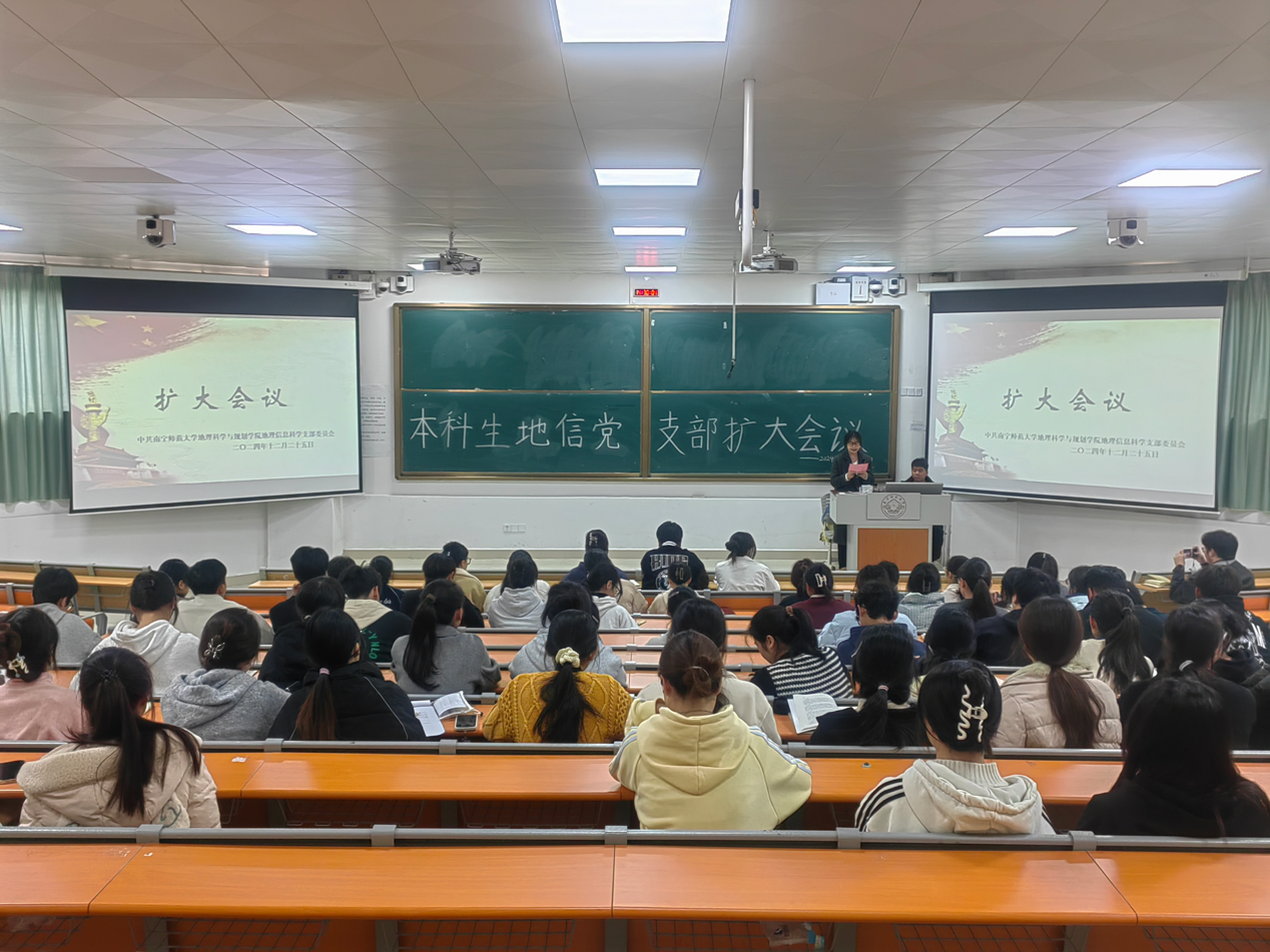12月25日,williamhill中国官方网站本科生地信党支部于威廉希尔中文官网武鸣校区1号教学楼115教室召开扩大会议暨支部党员大会。本次会议由覃玉雯同志主持,支部全体党员、发展对象以及各班积极分子共同参会。