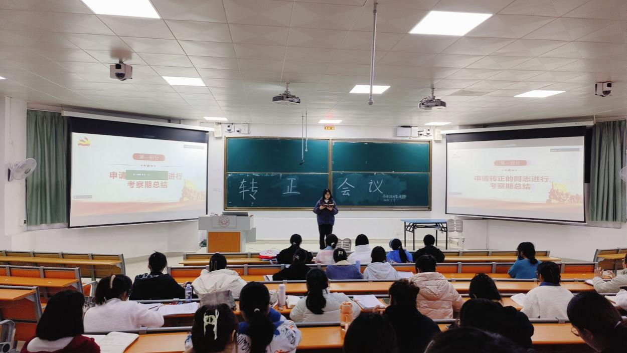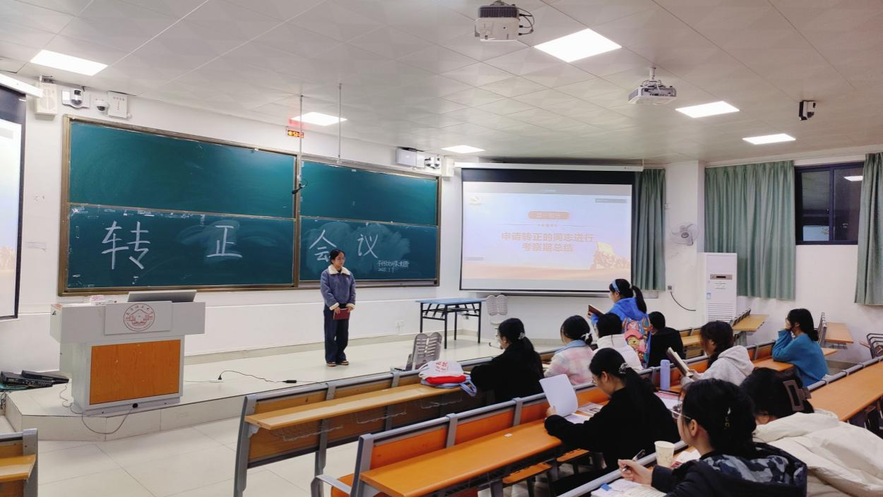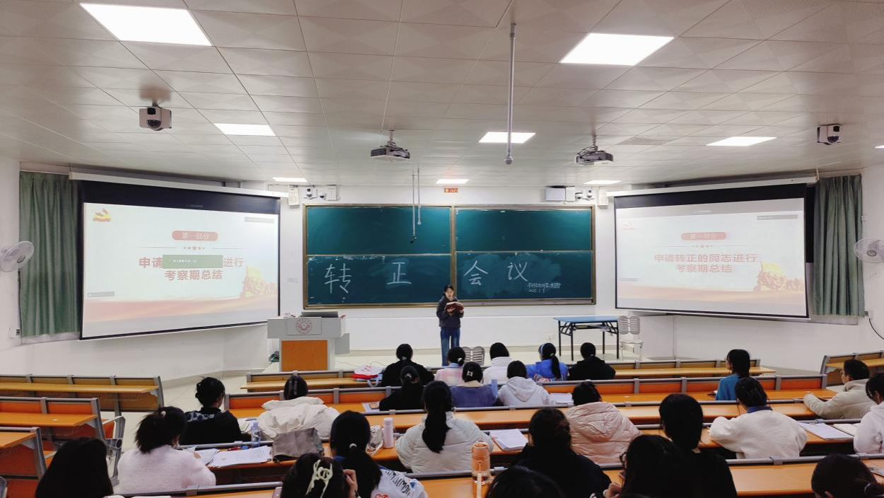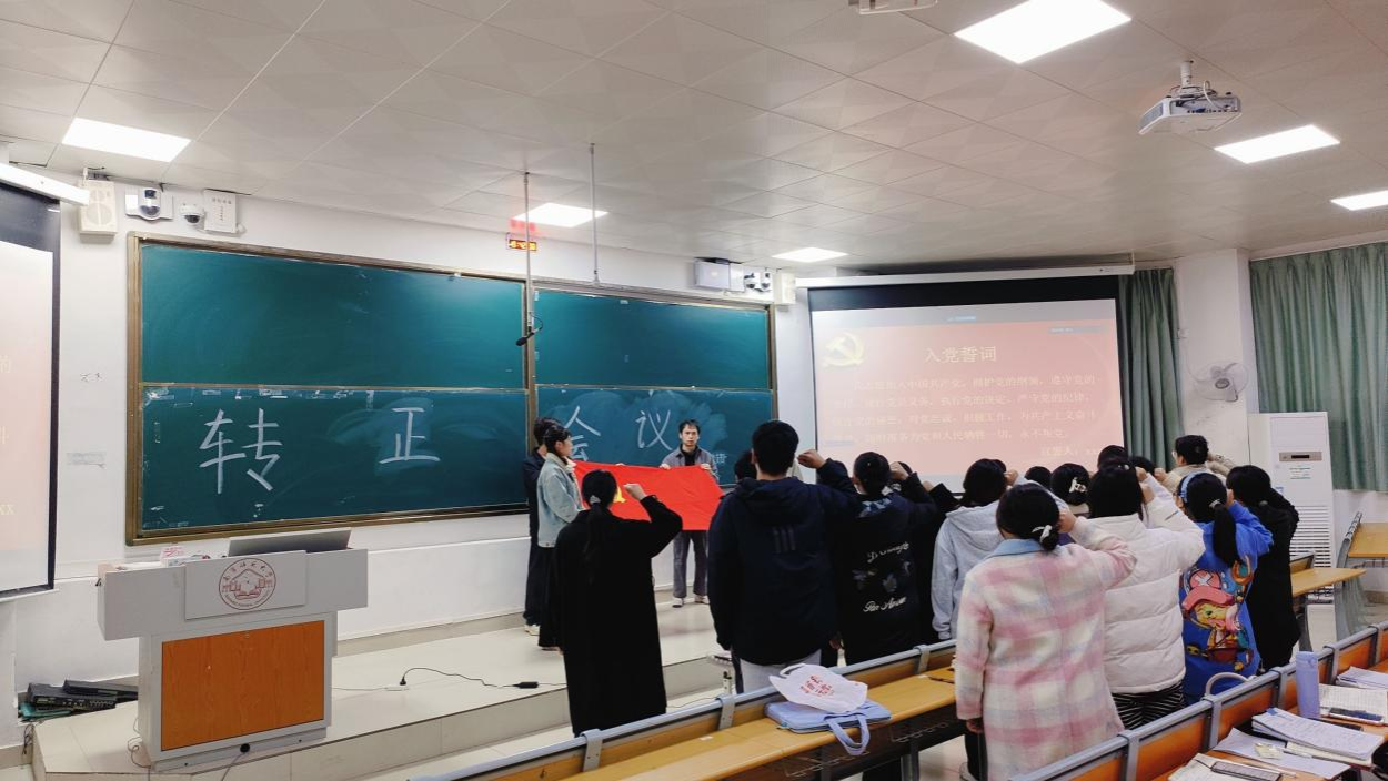 本次会议就谢学丹等14位中共预备党员是否如期转为中共正式党员的问题展开讨论。会议伊始,谢学丹等14位中共预备党员依次进行考察期总结,向党组织汇报在预备期间的思想、学习和生活等方面的情况。与会正式党员充分了解申请人的整体情况后,对申请人发表意见和看法并进行民主投票。经投票表决,同意接收谢学丹等14位中共预备党员为中共正式党员。随后,在支部组织委员黄小同志的带领下,全体党员重温入党誓词。最后,支部书记黄艳婷同志进行会议总结,希望如期转正的14位同志继续严格要求自己,为支部建设献出自己的一份力量。