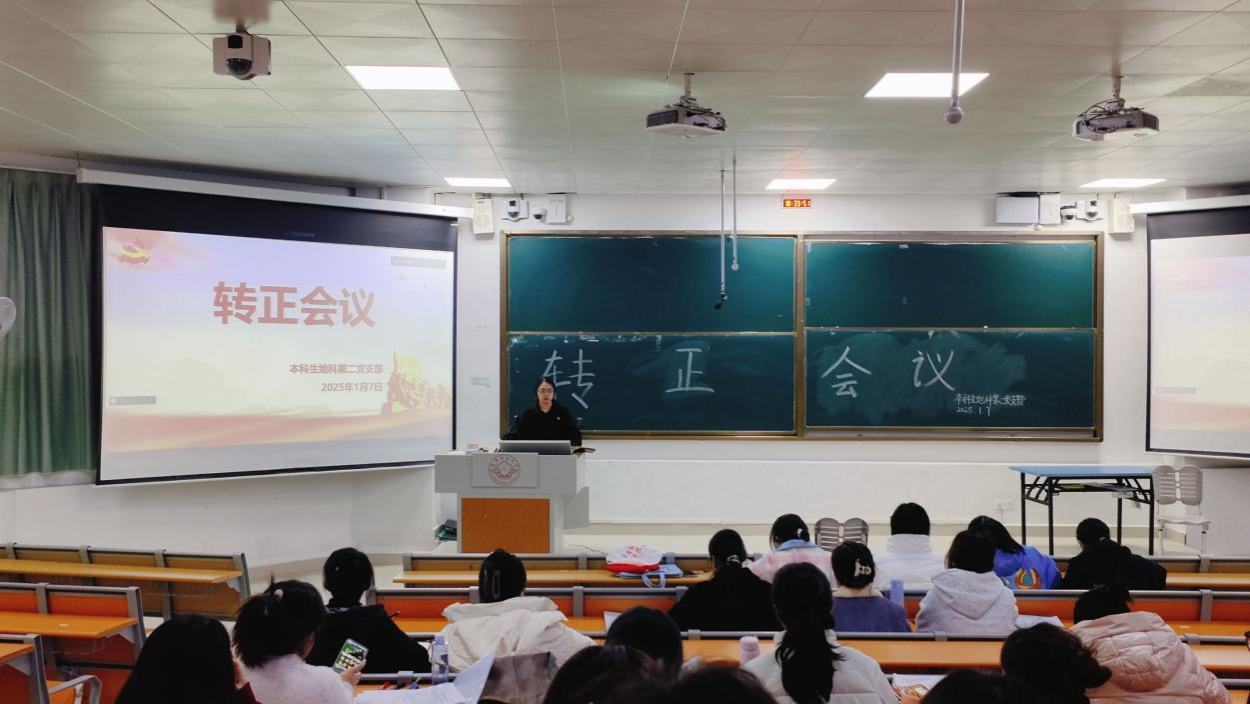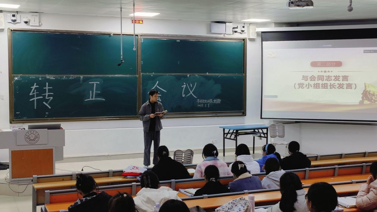 2025年1月7日,williamhill中国官方网站本科生地科第二党支部在威廉希尔中文官网武鸣校区1号教学楼114教室召开预备党员转正会议。会议由支部组织委员黄小同志主持,支部全体党员参会。