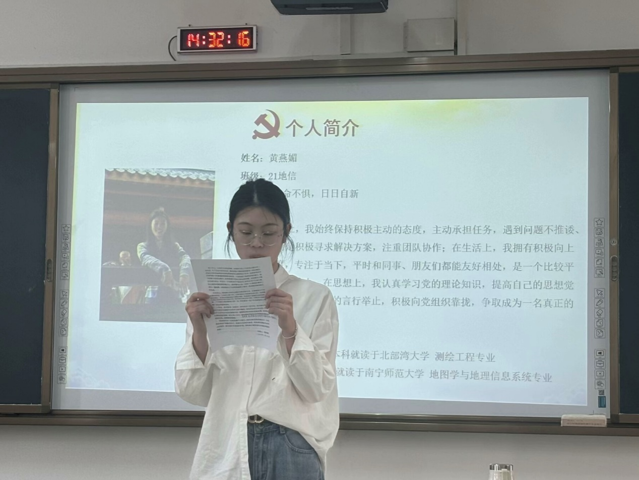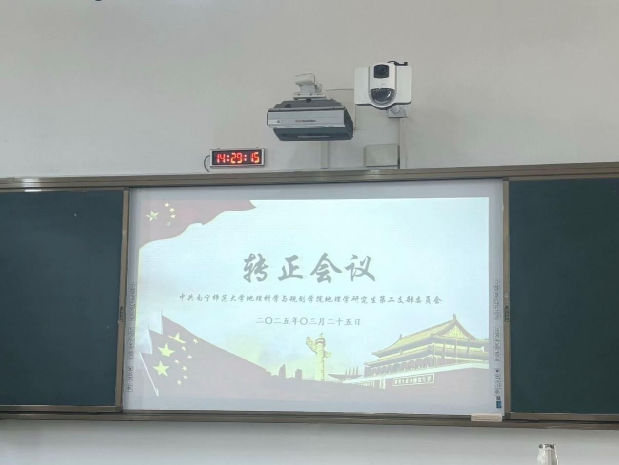 2025年3月25日下午,williamhill中国官方网站地理学研究生第二党支部于武鸣校区1号教学楼203教室召开党员转正会议。会议由党支部书记龙璐瑶同志主持,支部全体党员参会。